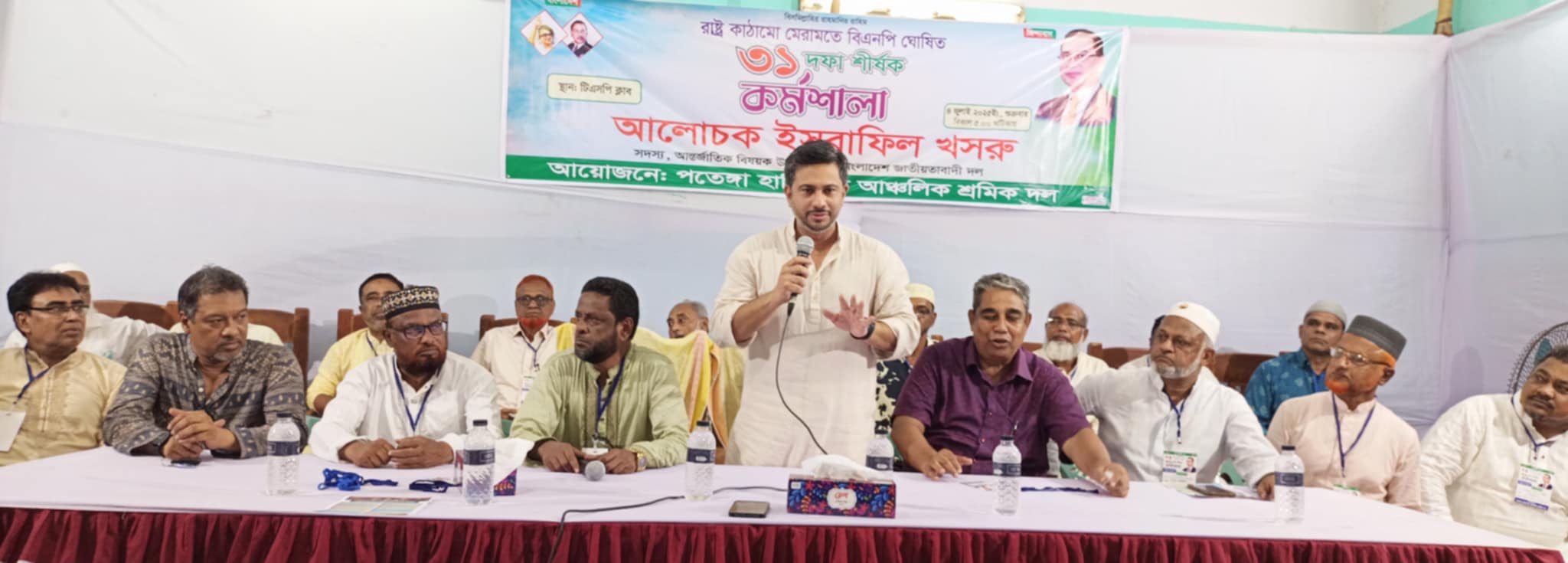 নিউজ ডেস্ক: পতেঙ্গা হালিশহর আঞ্চলিক শ্রমিক দলের আয়োজনে রাষ্ট্র কাঠামো মেরামতে বিএনপি ঘোষিত ৩১ দফা শীর্ষক কর্মশালা ৪ জুলাই (শুক্রবার) বিকাল ৪টায় পতেঙ্গার টিএসপি ক্লাবে অনুষ্ঠিত হয়। পতেঙ্গা হালিশহর আঞ্চলিক আরও পড়ুন